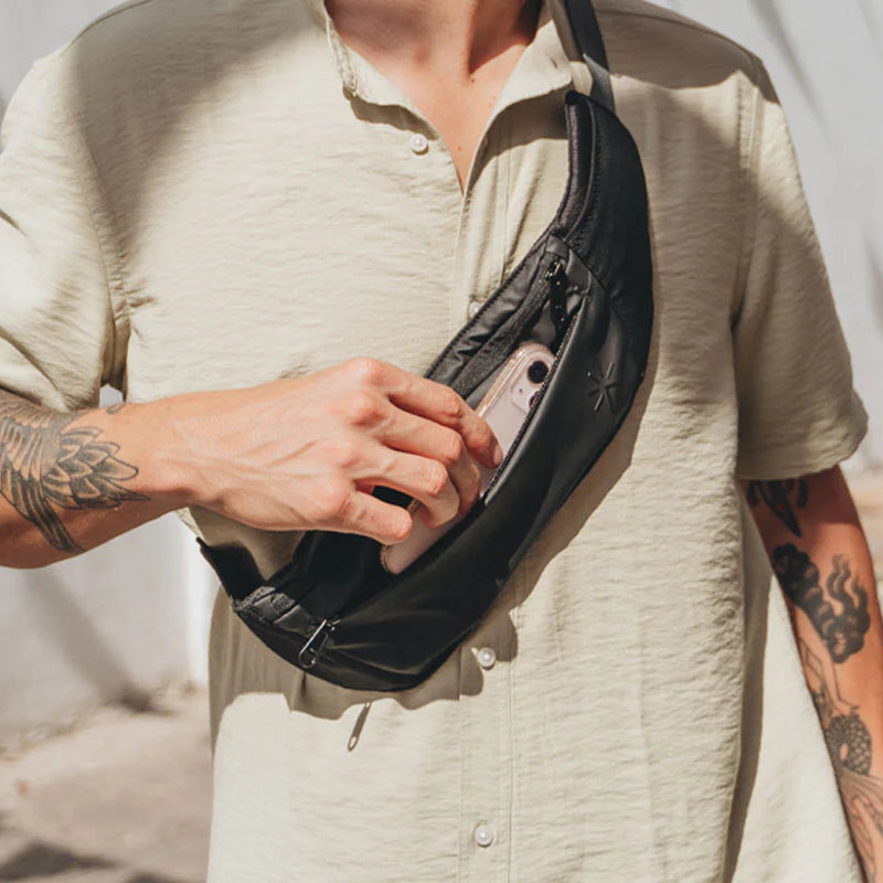 A hipbelt that can be removed from the backpack and used as an adaptable bumbag to keep your important belongings safe and accessible. Attach it to the camera cube to carry as a sling bag whilst on the move.