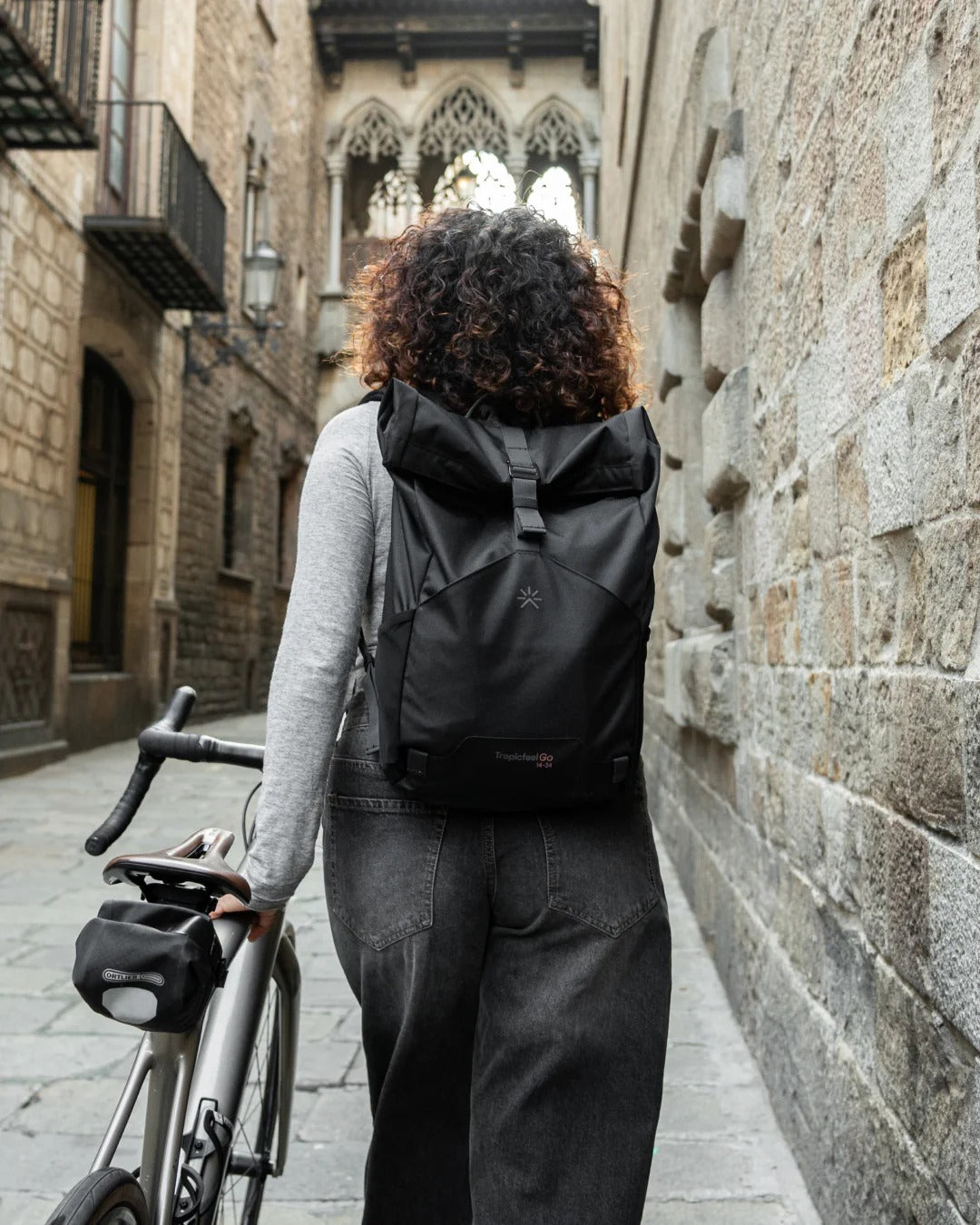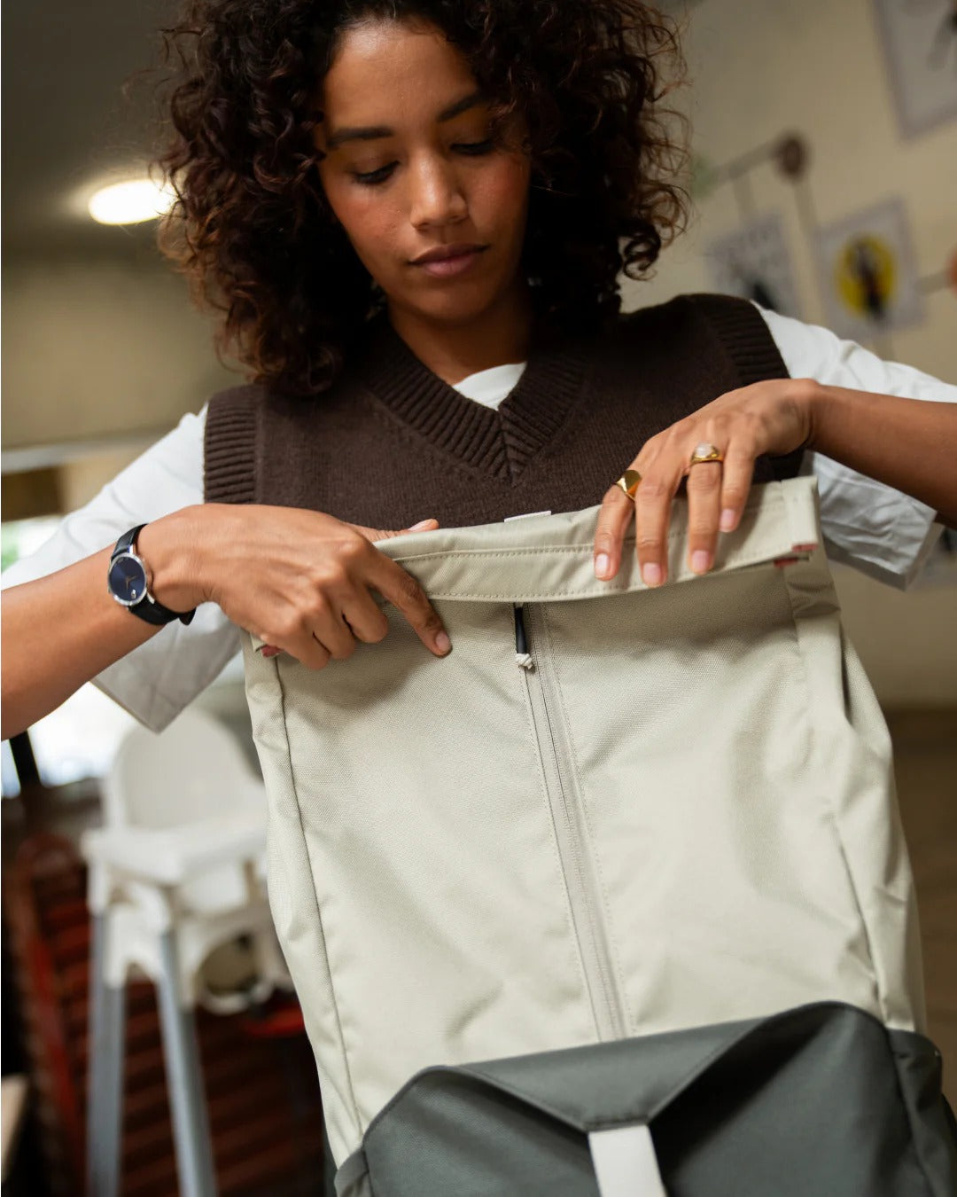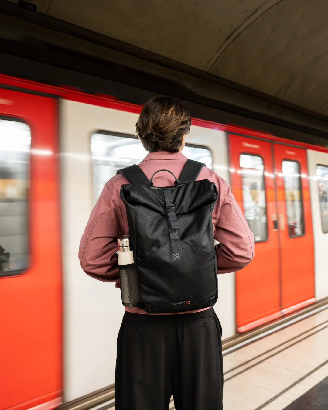 Roll Go is a smart, lightweight backpack with a roll-top opening and adjustable capacity, perfect for daily use and spontaneous getaways.