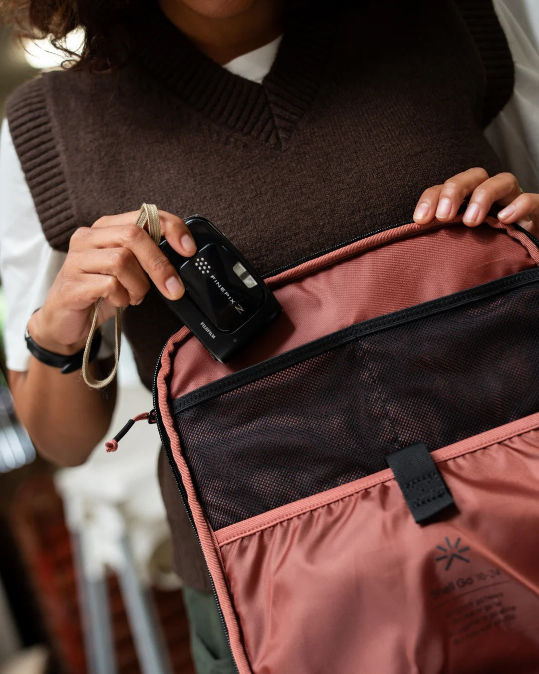 Shell Go is a compact, lightweight version of our iconic Shell backpack — with dual access, expandable volume, and smart compartments for everyday use and spontaneous trips.